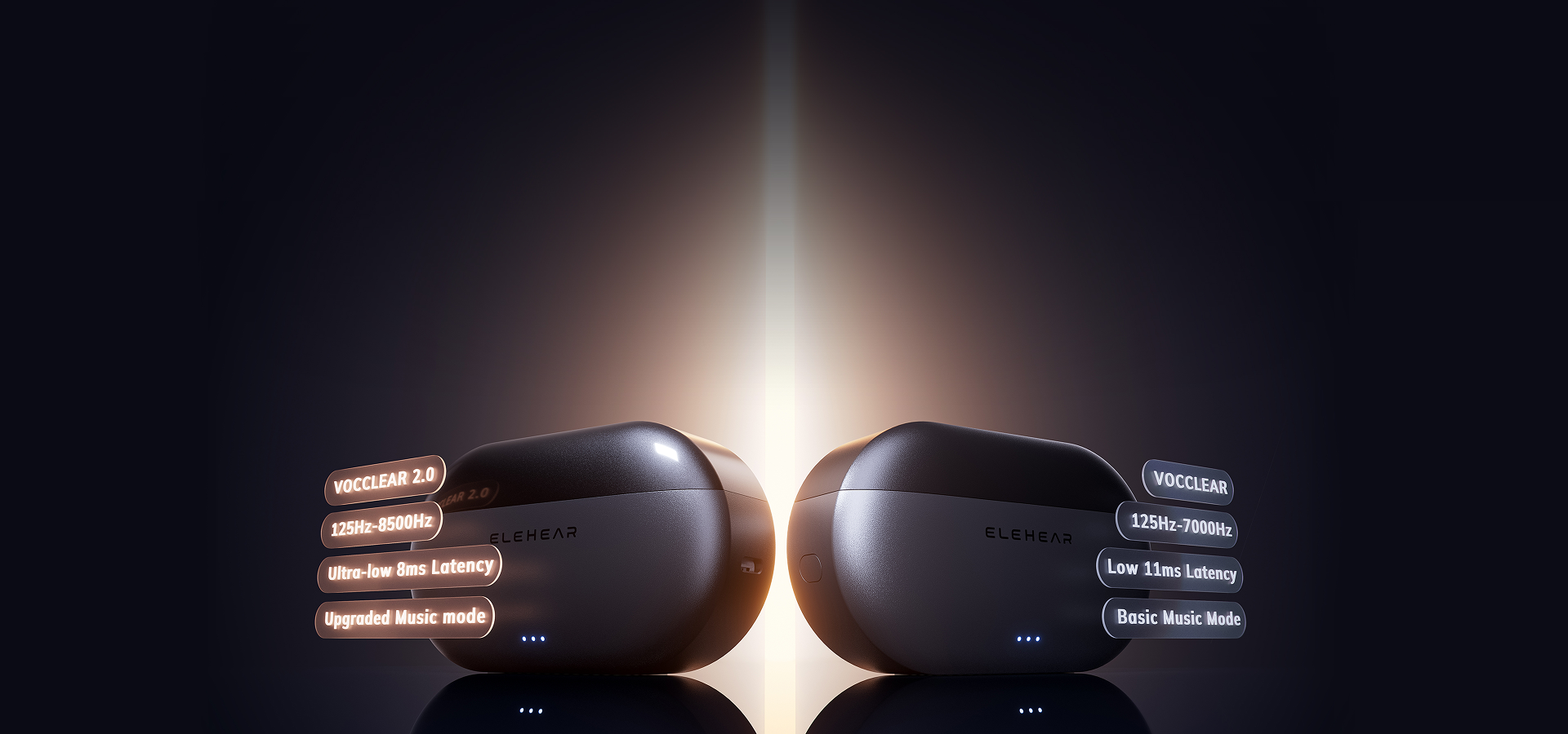 speech, a wider sound range (125Hz-8500Hz), and strornger Al noise reduction compared to Elehear